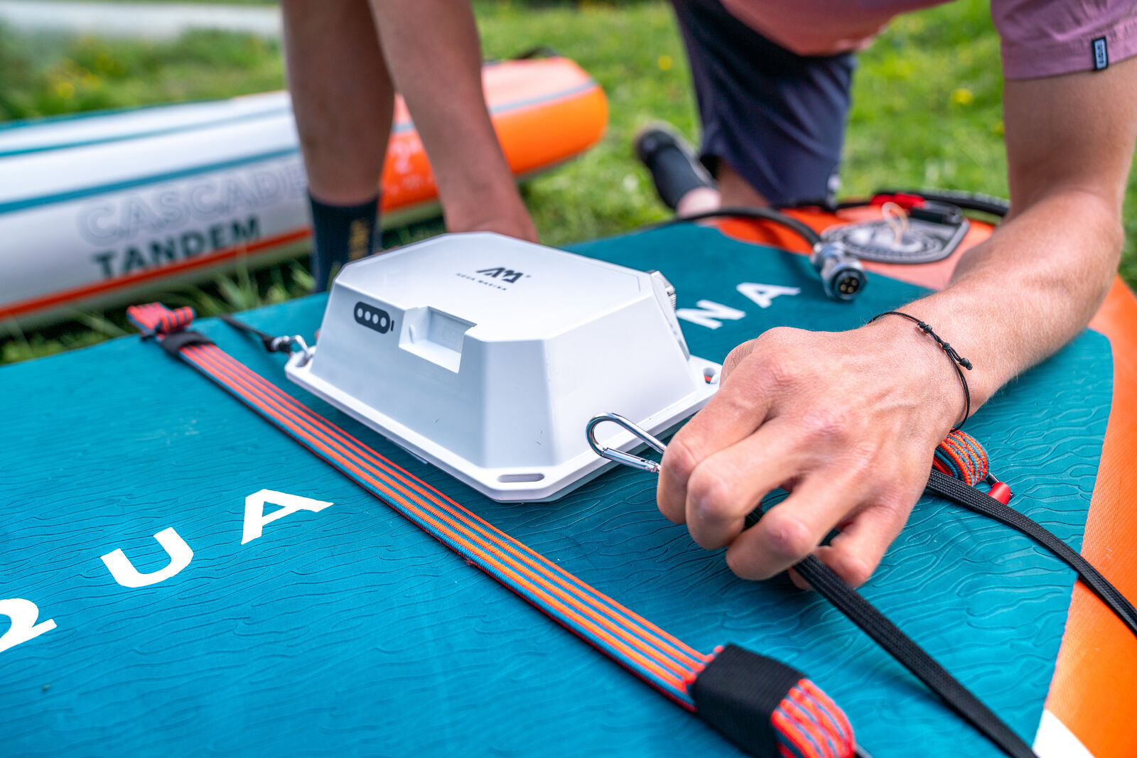 The Aqua Marina BlueDrive S Power Fin is an electric propulsion fin designed to fit watercrafts equipped with a fin box. It gives you a boost while paddling or lets you glide with less effort, making your excursions easier and more fun.