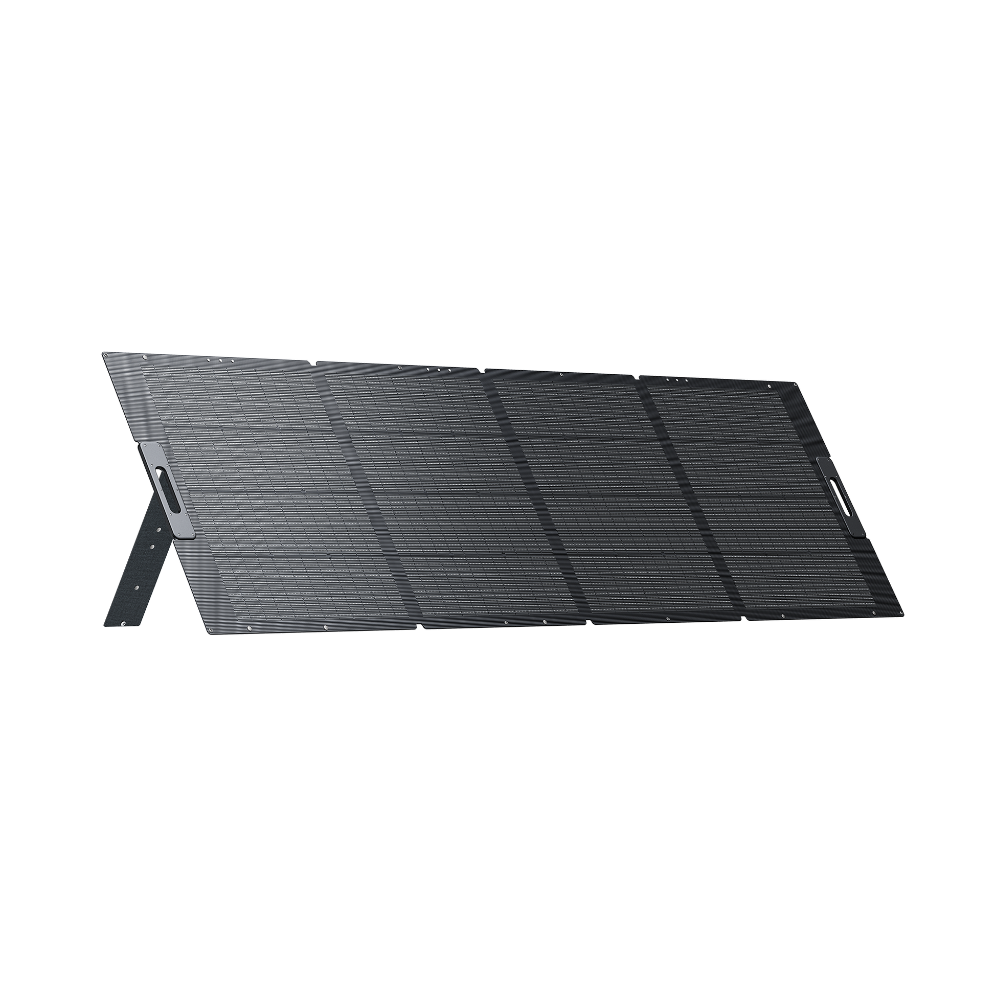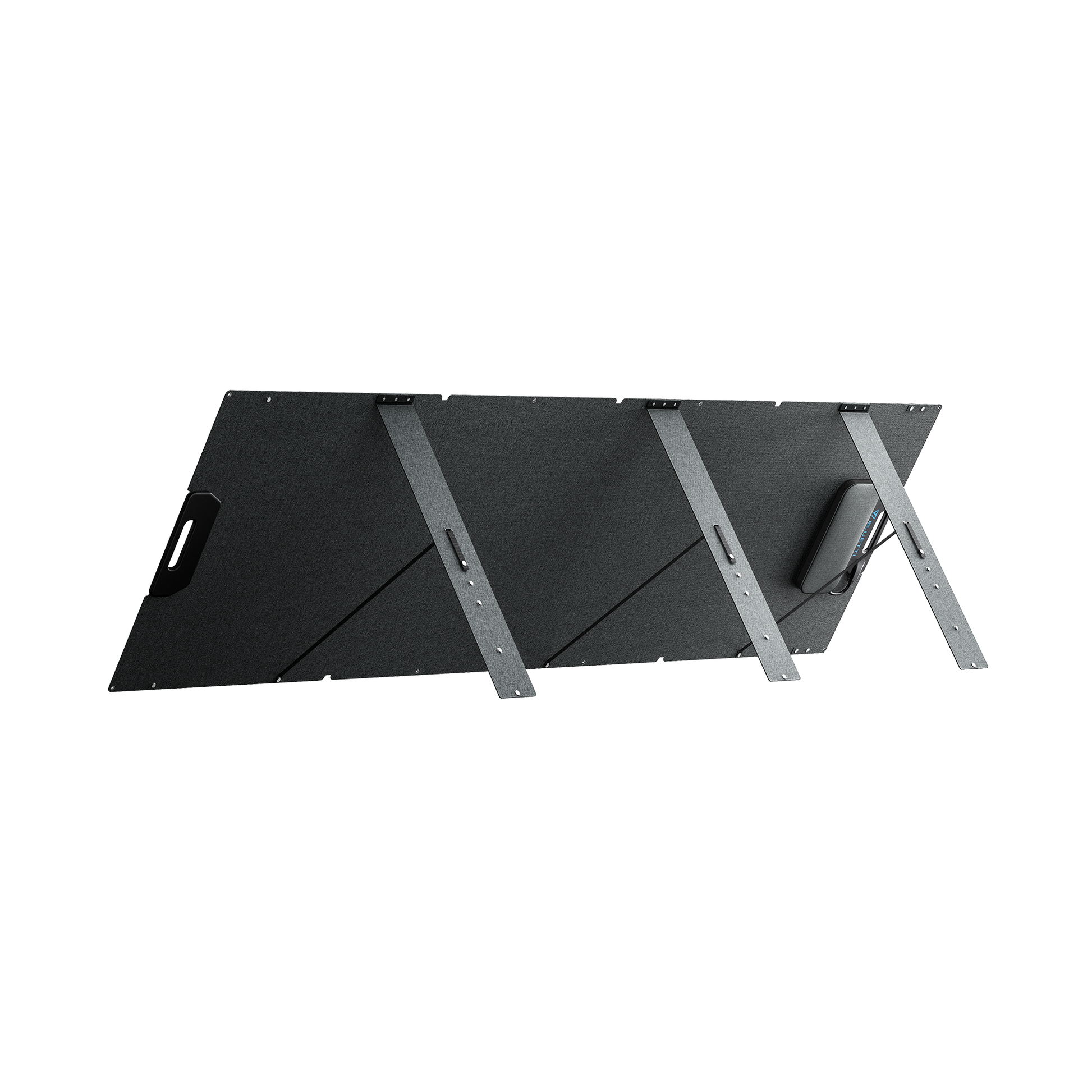 The BLUETTI 350W Solar Panel features universal MC4 connectors for easy setup and streamlined wiring. Its adjustable kickstand maximizes solar energy capture, while the foldable, lightweight design makes it perfect for travel—no more hauling bulky glass panels.