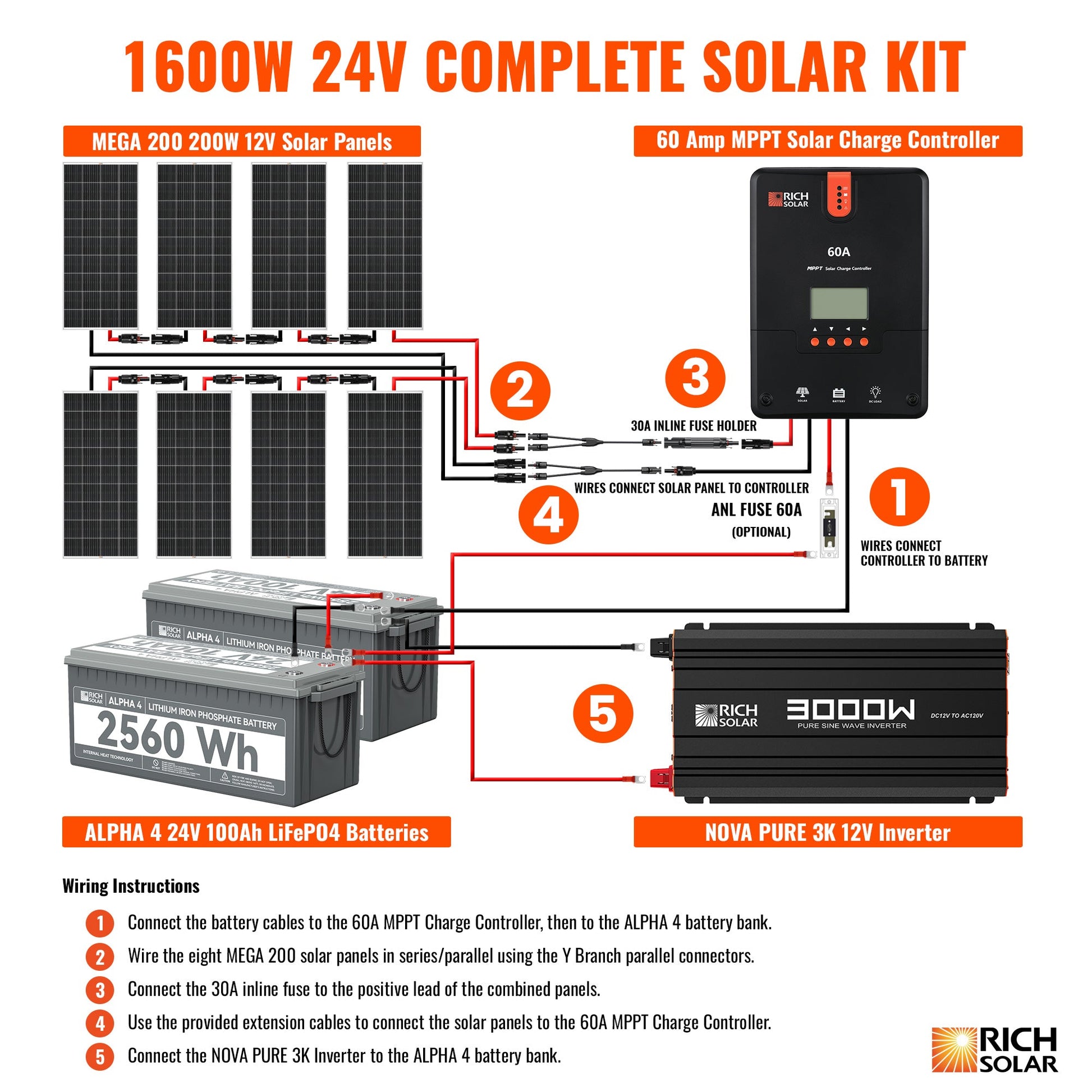 Rich Solar 1600W Complete Solar Kit | 24 Volt (24V) Off-Grid System (RS-CK1600)